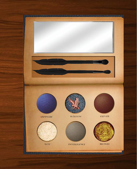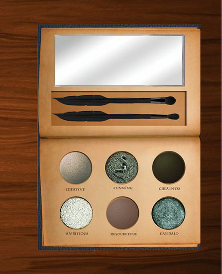 Slytherin’s makeup colors include a lustrous silver metal named Ambitious, a serpent-embossed green called Cunning, and a shimmery emerald hue aptly labeled, well, Emerald.