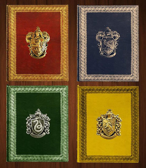 Ravenclaw’s has Wisdom, an inky blue shimmer embossed with a copper eagle; Intelligence, a somber gray; and Sapphire, a beautiful metallic royal blue.