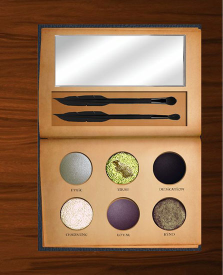 As for Hufflepuff, the palette has an interesting mix of deep purple (Loyal), shimmery brown (Kind), and badger-embossed yellow gold (Trust).
