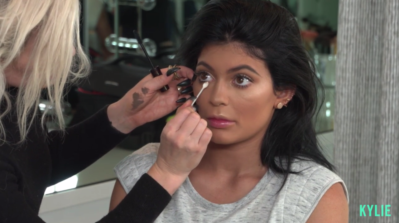 In a new tutorial on Kylie's website/app, Joyce explains that while applying mascara, she lets the wand hit the skin below Kylie's eye. That gives her eyes a more dramatic look, almost like you would get if you applied black eyeliner.