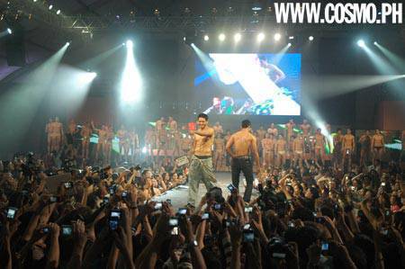 The Cosmopolitan Bachelor Bash 2009 held last night, September 10, at NBC Tent in The Fort was a raucous event packed with men, men, and more men—and screaming female fans! Barely-clad “inmates” were unleashed on the runway of the prison-themed party to tease and titillate the ladies. The Centerfolds brought the house down when they walked out onto the ramp last, dressed in handcuffs and prison jumpsuits, which they promptly took off, much to the audience’s excitement. Feast your eyes on these, girls!107