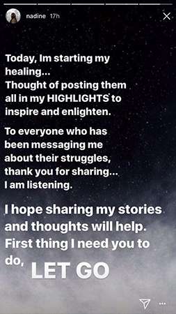 On Nadz's most recent Instagram Stories, she posted about sharing her healing process, the first step of which is to "let go."