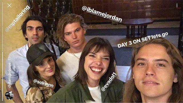 While Dylan's post is no longer up, something he warns about in his Instagram bio, "No photos are permanent," director Eva Doležalová posted shots of Dylan on set. That hair though!