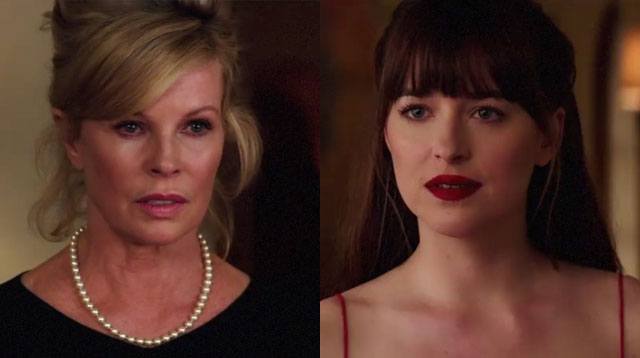 Fifty Shades Darker opens on February 8, which means it's almost time to see Christian's abs, hot legs, and his pommel horse trick. Until then, please feast your eyes on an exciting new clip Universal released over the weekend. It features another important part of the second book: the confrontation between Ana and Mrs. Robinson that takes place shortly after (~*minor spoiler alert*~) Christian and Ana's engagement announcement. If the movie stays true to the book, this scene happens moments before Ana throws her lemon martini in Elena’s face (what a waste, TBH). There are intense stares, a fierce pearl necklace, and a shade of red lipstick so dark (I know) one must wonder what magic makeup remover Dakota Johnson used after shooting that scene.