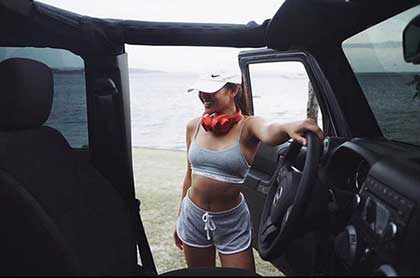 In January 2017, Jeep's social media accounts posted a photo of the actress beside her topless Wrangler.