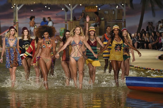 “Our casting director said, ‘She doesn’t really fit because you know she’s not quite as tall as the other girls, she’s not quite as thin,’” the designer told Yahoo Style. “So they put a red, white, and blue poncho on her. It covered a lot of her body unfortunately, but it received millions of hits.”