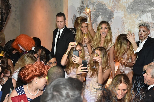 It certainly wasn't an easy job for Marino and his colleague Mike Fontaine. They had to figure out how to make five other women look exactly like Heidi Klum, after all. Here's how they did it: After taking a Lifecast of Heidi's face, Marino and Fontaine made masks from the mold. The models in Heidi's clone army wore the mask along with "DermaFlage silicone to fill any gaps in the mask" and prosthetics. The process took about two hours—per person. And then the beauty makeup and hair styling happened. So much work!