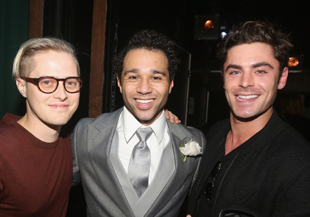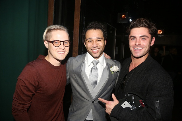 On Tuesday, High School Musical stars Zac Efron (Troy Bolton) and Lucas Grabeel (Ryan Evans) went out to support their former classmate Corbin Bleu (Chad Danforth) in his new Broadway musical, Holiday Inn. The trio was all smiles during the mini-reunion, and both Zac and Lucas were quick to gush over Corbin’s incredible performance later the next day.