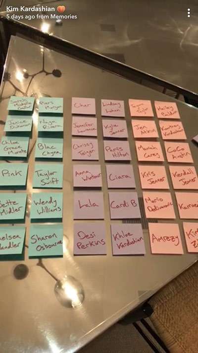 Not simple. In addition to announcing the fragrances, Kim Snapchatted an image of a color-coded Post-It Note grid with celebrity names, allegedly forming a list of which big celebrities received which fragrance sent directly from Kim—there are some names you would expect like Kendall Jenner (she's BFF pink), Cardi B (Ride or Die purple)... but there's something different about the blue list. Namely, it's 100 percent people who Kim has beefed with in the past.