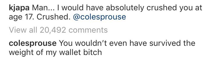 But the best part of this is clearly Cole's response. We mean, he might not have been as ~*fit*~ as KJ, but at that age, his net worth was DEFINITELY more than any other regular 17-year-old: