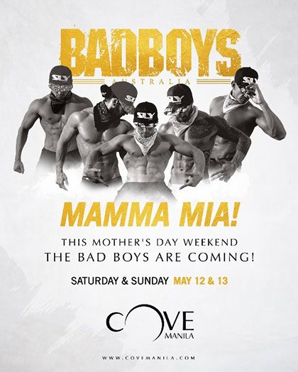 ADVERTISMENT - CONTINUE READING BELOW ↓ - It's going to be raining men in the summer with Badboys Australia performing at Cove Manila on May 12 and 13! It's the group’s first time to perform in the Philippines as part of their Badboys XXL Tour. Expect steamy dance numbers, good beats, and interaction with the Badboys. Ticket prices begin at P1,000 inclusive of one (1) drink voucher. Doors open at 7:00 p.m