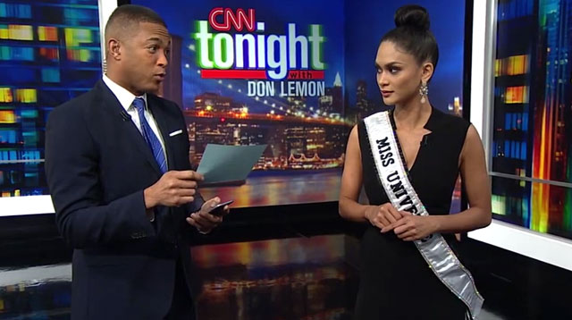 Pia Alonzo Wurtzbach was on a roll on her first official working day as Miss Universe 2015 with back-to-back TV appearances in New York City. One particular interview that grabbed our attention was with CNN’s Don Lemon.