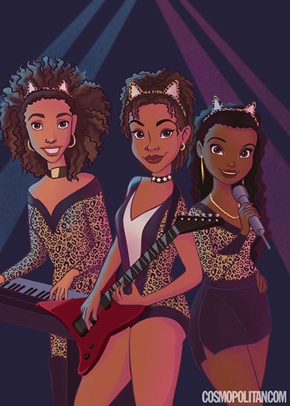 7. Josie and the Pusscats, a medley: (from left): Valerie Brown as Kida from Atlantis: The Lost Empire; Josie McCoy as Tiana from The Princess and the Frog; and Melody Valentine as Iridessa from Disney Fairies