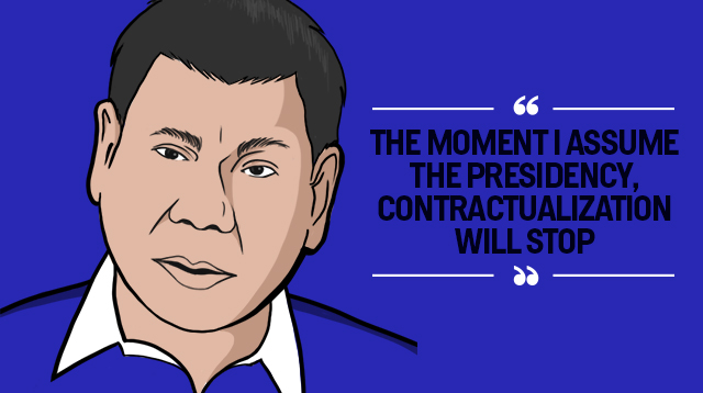 One of the issues raised was contractualization—something that many Filipinos turn to, just to get employment. Davao Mayor Rodrigo Duterte vowed that he will stop contractualization on his first week as President of the Philippines.