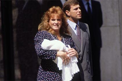 Here's Sarah Ferguson debuting Baby Beatrice! Wow, her hair is SOMETHING else. Bow in the presence of greatness.