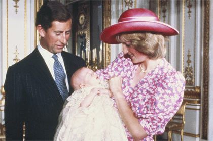 Here's Prince William in his shawl. Memories! And Diana, rocking her signature "I just pushed out a baby, LOL" hair.