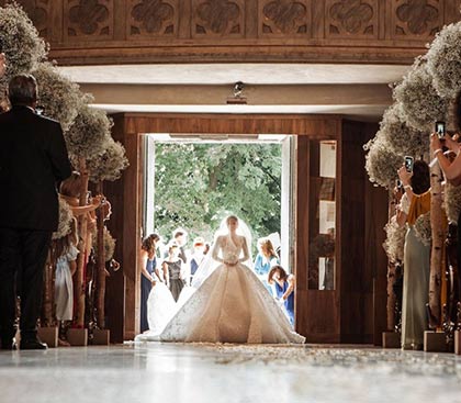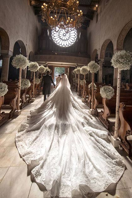 The next day, guests headed to the Cathedral of San Giusto in Trieste for the nuptials, where Swarovski channeled her inner Kate Middleton with a mesmerizing bridal train measuring nearly 20 feet long.