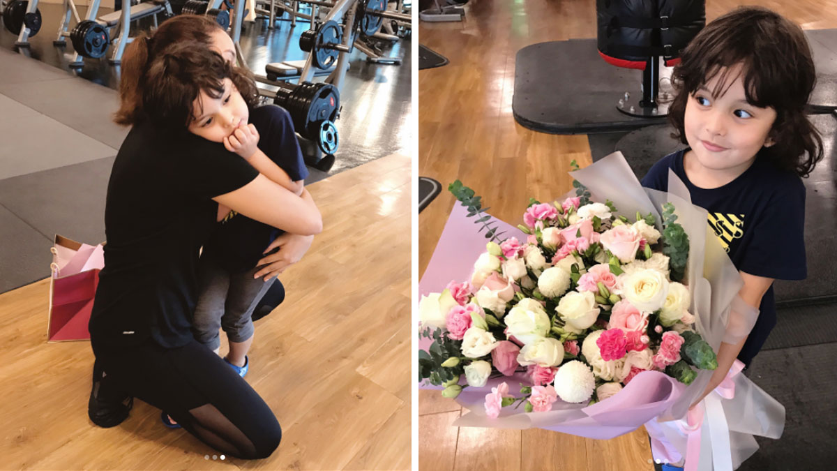 1 Isn't Zion the sweetest? For mom Sarah Lahbati's 24th birthday on October 9, 2017, he, with a little help from dad Richard Gutierrez, surprised her at the gym with a large bouquet of flowers! The soon-to-be mom of two shared the "highlight of her birthday" on Instagram, and in the video below, Zion can be heard saying, "Tumutulo 'yung water." Oh, Zion! (ABS-CBN)