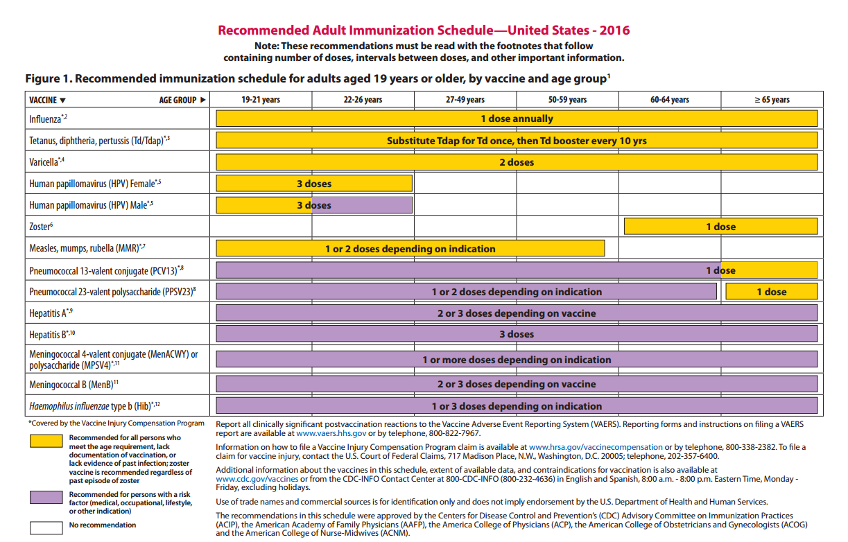 Recommended for: all adults, particularly non-pregnant women of child-bearing age especially if you have never had the chicken pox before or have never been received this shot before.