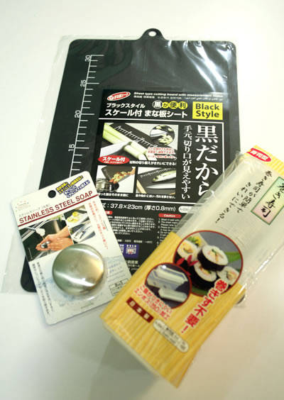 The (12) stainless steel "soap" was probably the most random item I saw in the store, which was why I just had to go ahead and buy it. Supposedly, rubbing your hands on a stainless-steel surface removes the smell of fish, onions, and garlic. Leave it to the Japanese to make a special "soap" for this very purpose.
