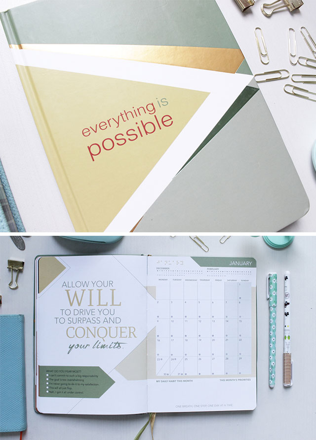 Why you should get it: You’re always putting things off, and you want to finally get things done. Power words such as “dedication” and “vision” are illustrated on the monthly dividers to hopefully keep you focused. There’s also a monthly check-up page and year-end workbook to make sure you’re mindful of your goals.