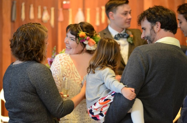 As wedding planning goes, I never did live out the trope of daydreaming of wedding dresses and flowers girls. Once we found a venue, nothing felt stuffy or required; it all felt lovely and easy. Knowing that we wanted to focus on not only our own love but also the love our community made every decision simple, including who to include on the guest list. My mother wouldn’t be on it. We wanted it to be a celebration of our individual lives, and our life together. We had very little money so we stuck to intimacy as a theme in our small reception hall affair. Each piece of the puzzle that was our wedding was made with—as cliché as it sounds—love.