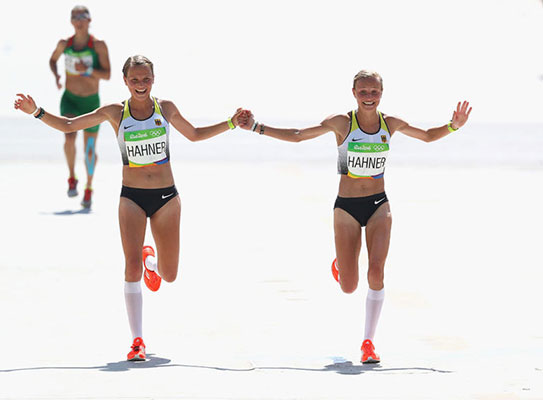 2. Twins Lisa and Anna Hahner finishing the race holding hands.