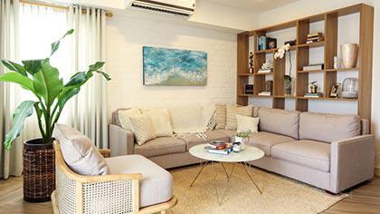 Upon entrance to the unit, guests would instantly feel at ease. The vibe is light and airy, with neutrals taking over the space and natural light streaming through the sliding glass doors. Janine opted to have a tropical theme as she has always dreamed of owning a resort in the future.