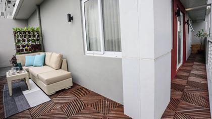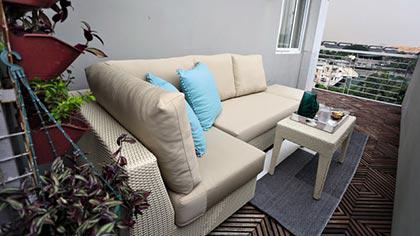 Sprucing up the balcony are the wood tiles arranged in a chevron pattern. These pieces add warmth to the nook and even make for an interesting focal point in the area. If you've always wanted to recreate the feel of a resort or a beach house in your home, count on wood tiles to liven up a lanai or balcony.
