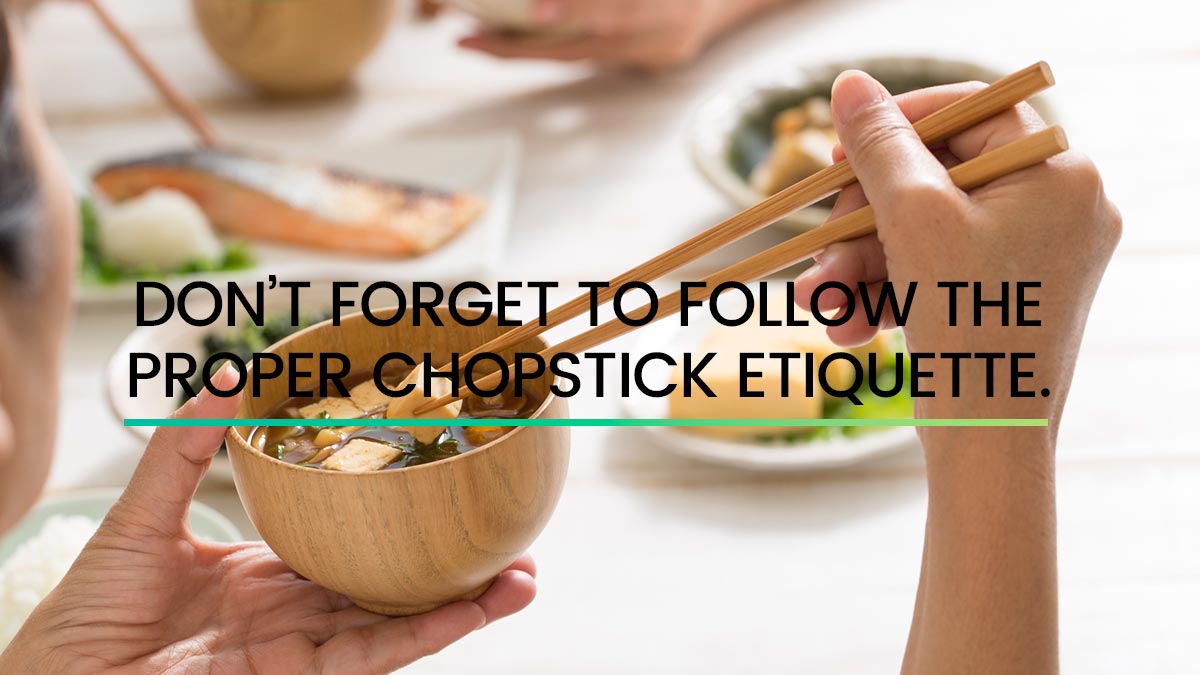 1. Don’t forget to follow the proper chopstick etiquette.