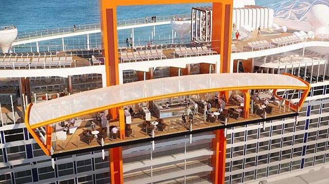 On deck five, the Magic Carpet extends to another restaurant to give it "the most amazing al fresco seating imaginable," and the lowest deck is the perfect viewing platform for guests.