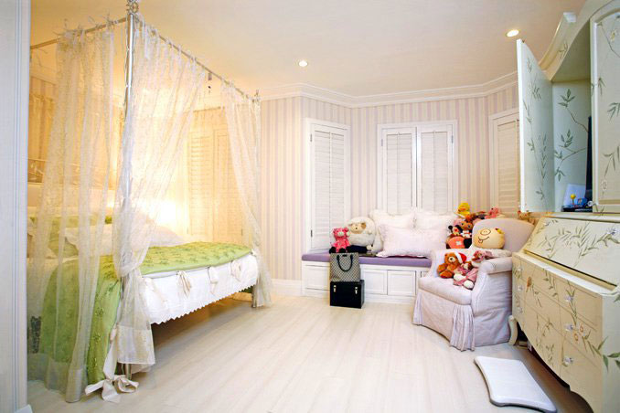 Designed by interior designers Ivy and Cynthia Almario, the actress' room is a mix of old and new. Anne sleeps in a custom-made canopy bed with sheer organza curtains, like a true princess. Near the bed is a window seat covered in stuffed toys and throw pillows.