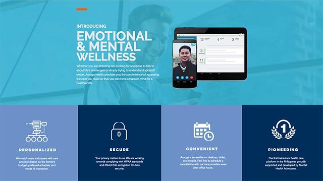 Arooga matches you with a trusted care provider based on your objective, preferred schedule, mode of interaction, and budget. You have the option of meeting your therapist in person or conducting the session via video call or chat. The app will be available on desktop, tablet, and mobile. Your private information and conversations will be secure since Arooga Health is working towards complying with the Philippine Data Privacy Act of 2012 on top of the Health Insurance Portability and Accountability Act (HIPAA) standards. Your data will be kept safe using 256-bit SSL encryption. Each session will consist of a personalized care assessment and a one-hour consult.