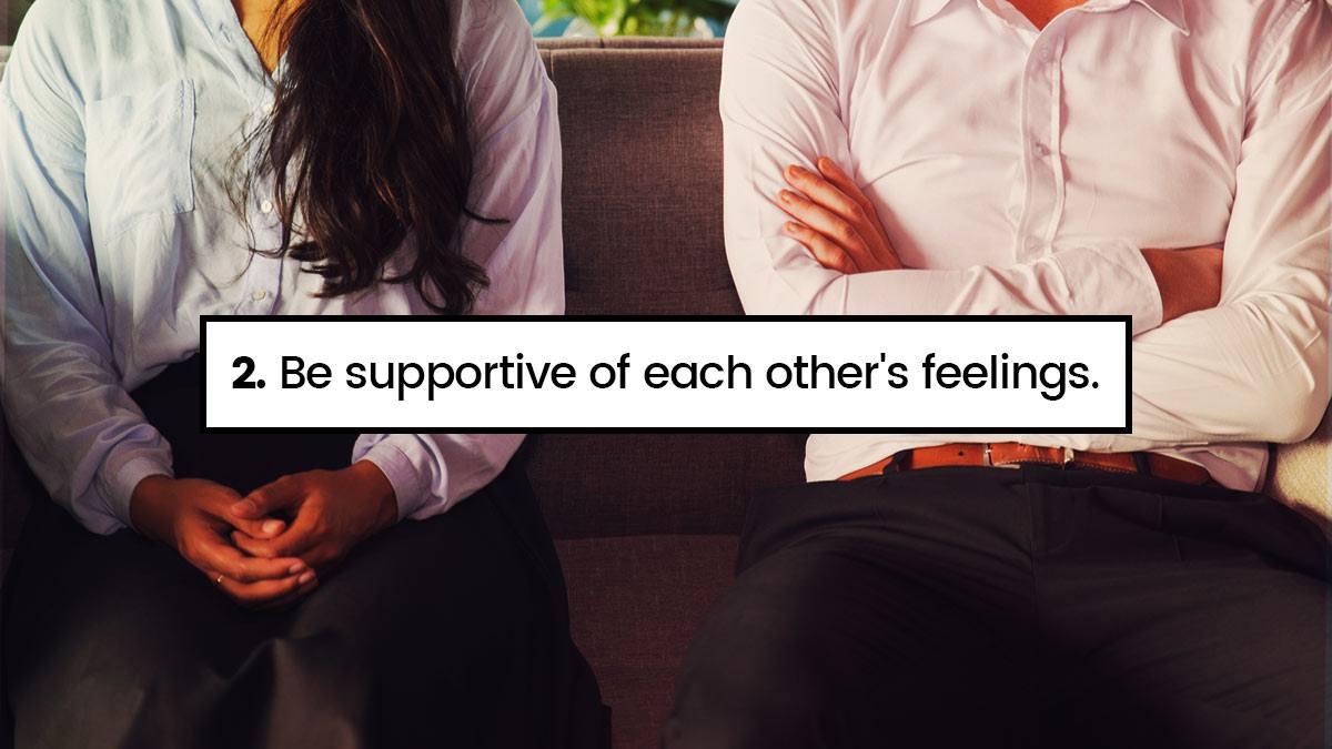 Be supportive of each other's feelings.
