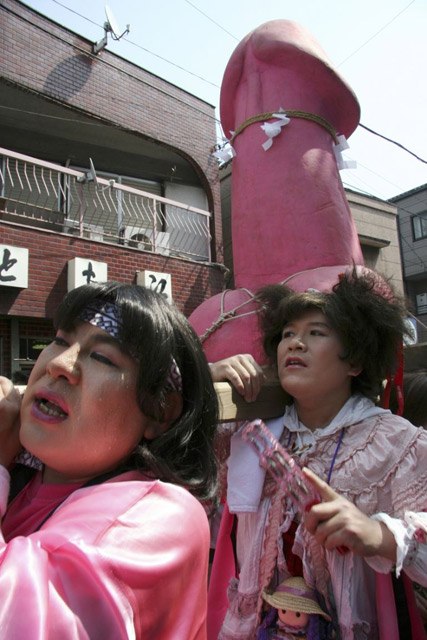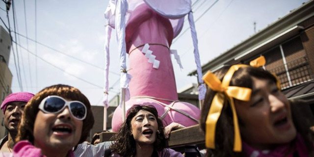 It's held in April, and people go nuts (not even sorry) trying to get a look at the mikoshi, aka giant disembodied penis which is actually a portable shrine.