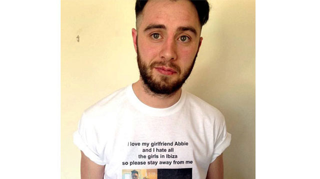 A 20-year-old woman named Abbie Bartlett had a shirt custom-made for her 24-year-old boyfriend and baby daddy Leon Connolly, which he was to wear during a trip to Ibiza. The shirt had these words written on it: "I love my girlfriend Abbie, I hate the girls in Ibiza, so please stay away from me."