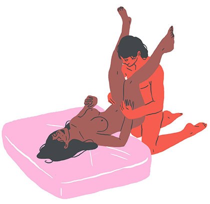 He kneels, you sit back on the couch with your butt at the edge, feet over his shoulders. You can both watch him sliding into you—and it's even better if he takes you at an excruciatingly slow pace. When you can't take anymore and reach down to stroke yourself—it just makes the view that much better.
