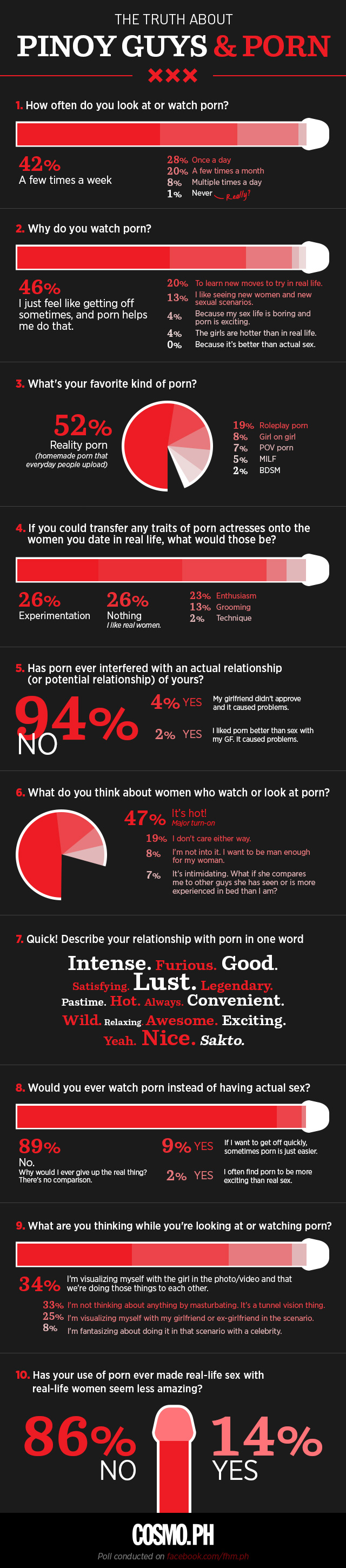 In the indie film Don Jon, Joseph Gordon-Levitt plays a porn-addicted dude who prefers his laptop to his lady. Luckily, though, JGL's skeezy character is actually a small minority: Most men use porn as a pastime completely unrelated to their real-life relationships and say no porn star can replace sexy, in-the-flesh you. Good to know, right? Now, check out the details for yourself. (Poll conducted on facebook.com/fhm.ph)