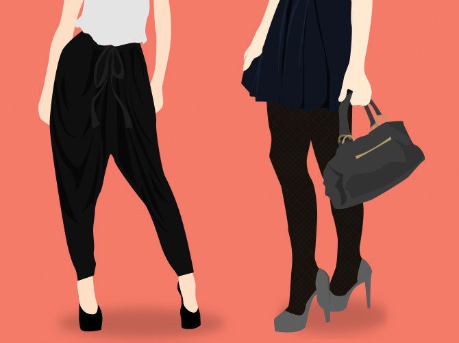 Case in point: these 11 fashion trends. We asked a guy to comment on each one, and we, in turn, reacted in defense of our style choices.
