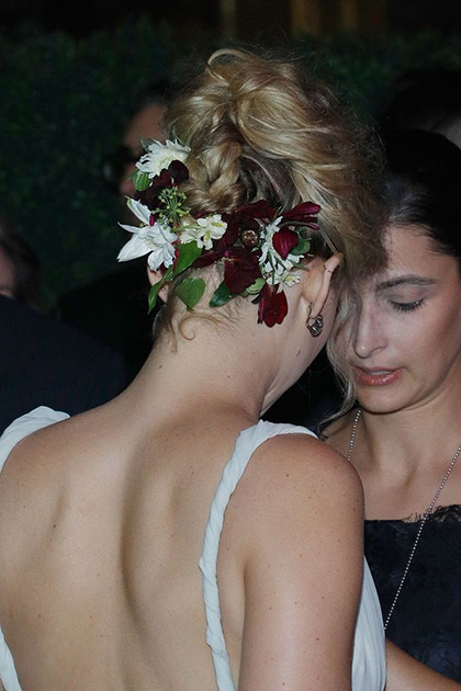 Jen wore her hair up in a cute curly 'do with loads of flowers at the back (AHEM, bridal hair) and basically couldn't take that huge smile off her face all night.