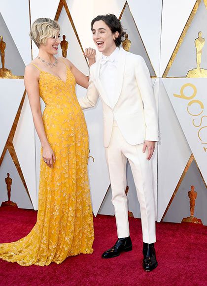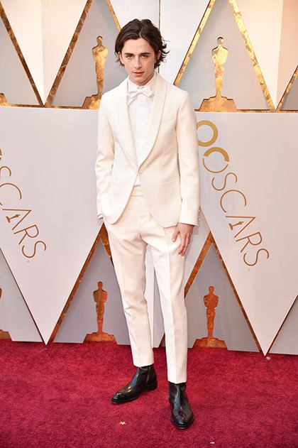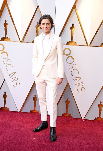 Your boyfriend Timothée Chalamet showed up at the Oscars in a white tux, which for any other person would be a categorically terrible idea, but because this is Timothée, it looks like the only kind of tux anyone should ever wear. Timothée is nominated for Best Actor in Call Me By Your Name, and if he wins, he'll overtake Adrien Brody as the youngest-ever Best Actor winner. But for now, focus on this suit. Look how gorgeous it is!