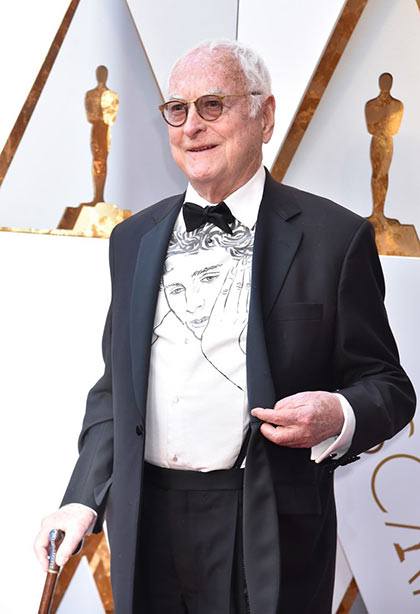And if all that's not enough Timothée for you, here's Call Me By Your Name screenwriter James Ivory wearing Timothée's face on his shirt: