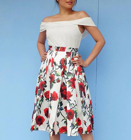 The perfect style to wear to a romantic date! Pair the full midi with a slim off-shoulder top or a ruffled blouse.