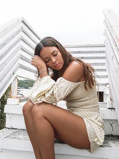 ADVERTISMENT - CONTINUE READING BELOW ↓Off-the-shoulder top, P2,200; shorts with ribbon belt, P2,000, TALA