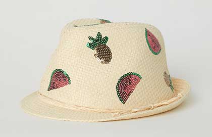 Not a fan of loud prints? Rely on a trendy straw hat with quirky fruit details to add a touch of fiesta to your summer uniform.