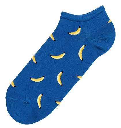 Can’t find yourself swapping your usual white sneaks for a pair of summery espadrilles? Add a pair of banana printed socks to rack up your summer style points.
