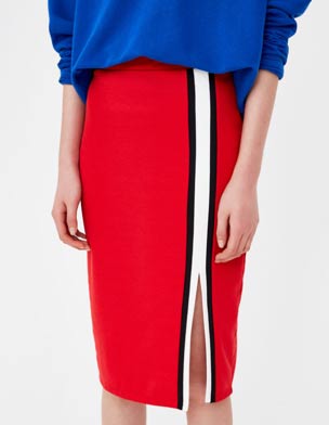 ADVERTISMENT - CONTINUE READING BELOW ↓Red skirt with stripe, P895, Pull & Bear