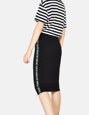 Black knit midi with side taping, P995, Bershka